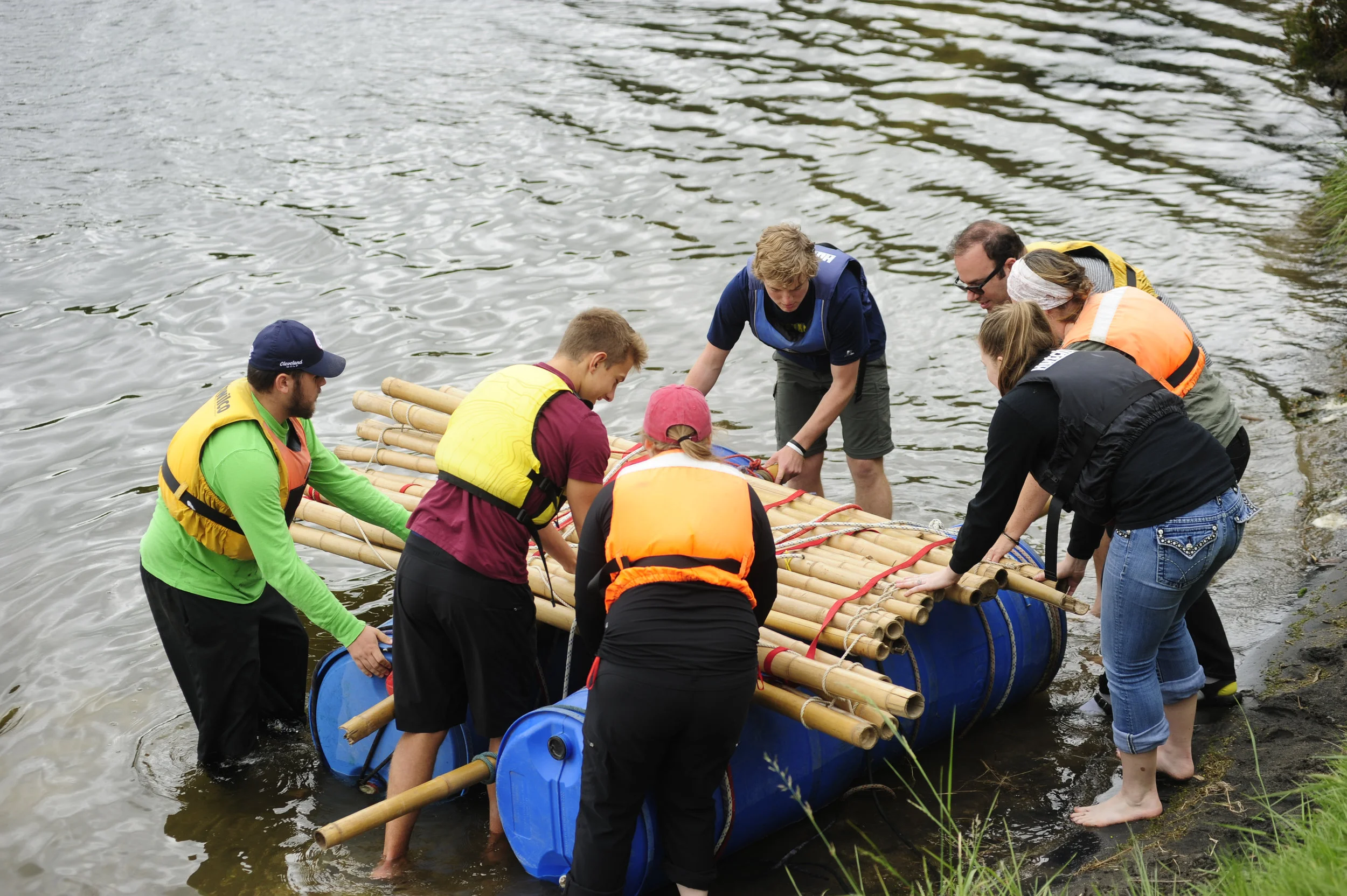 The raft broke but the task was achieved. This was a team building exercise. I can't help but think that Reeta's personal experience in broken rafts is what led to her amazing ability to take charge and pull that raft around the point. She laughed all the way through. :)